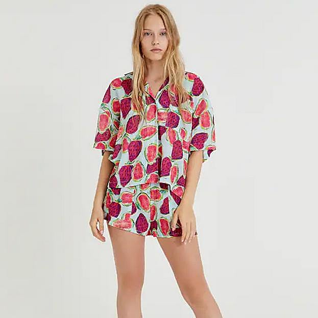 Hay estampados y estampados, y entre los aires primaverales del estampado de flores y el toque elegante de los lunares es posible que hayamos llenado nuestro armario de propuestas tan diversas como bonitas. Pero cuando aprieta el calor y soñamos con nuestras vacaciones o estamos disfrutando de ellas apetece lanzarse al estampado más vistoso del momento. Para algunos es el tropical, para otros el frutal, Pull&Bear se ha decantado por el segundo para dos conjuntos de camisa y bermuda que son puro verano.