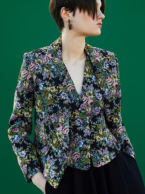 Y entre lo mejor que puedes encontrar ahora mismo en la firma, hemos fichado un conjunto de chaleco y chaqueta que es ideal. Se trata de dos piezas confeccionadas en jacquard de flores en colores llamativos con el verde como protagonista. La chaqueta es un modelo corto con manga larga y cuello de solapa que cuesta 39,99 euros, una pieza que es ideal por sí sola y que es perfecta para dar vida a looks más básicos, pero que junto al chaleco queda de maravilla.