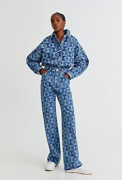 Se trata de un dos piezas formado por unos pantalones y una cazadora a juego. Los jeans son de talle alto, pernera recta y 'full lenght' y cuestan 29,99 euros. La parte de arriba es una camisa vaquera de manga larga, que lleva el mismo 'print' de flores y que cuesta 29,99 euros. ¡Ideal!