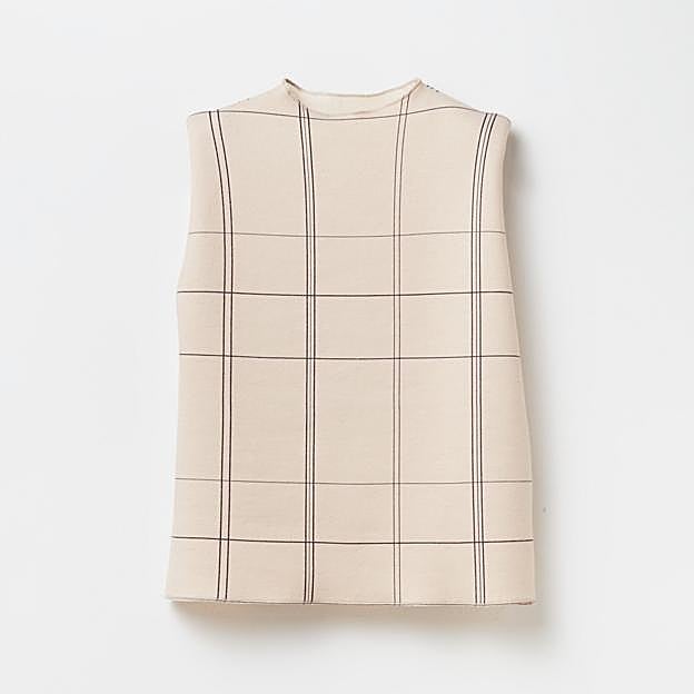 El top es un modelo de lo más elegante. Se trata de un cuerpo sin mangas, de diseño recto y nada ajustado que tiene el cuello redondo y que está protagonizado por un print de cuadros de lo más elegante y favorecedor.