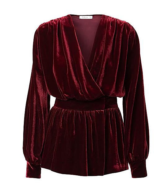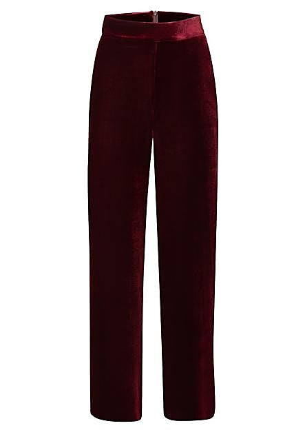 Victoria escogió una blazer cruzada y drapeada (490 euros) con un diseño ajustado a la cintura que simula un cinturón en color burdeos. Una prenda súper ponible tanto para las fiestas como para el día a día -con vaqueros y botines, por ejemplo- que ella combinó con sus pantalones a juego (310 euros). La pieza inferior es un modelo de talle alto palazzo que sienta de lujo y que, sumado al corte de la chaqueta, hace que la figura quede definida y muy estilizada.