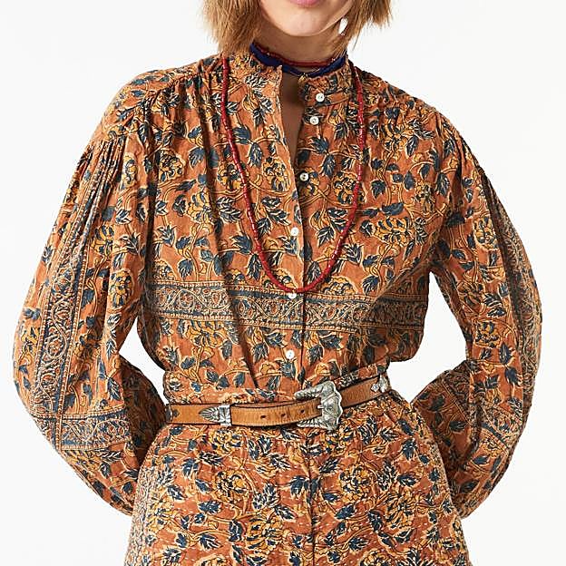 Verónica Díaz también ha lucido en las redes un modelo similar a la de la socialité, pero más colorido y claro. Ella optó por una camisa de gasa de algodón jacquard en color ocre anaranjado con estampados de flores y mangas abullonadas ajustadas en los puños por un botón. También es de 100% algodón y lo mejor de todo es que está rebajada a 87 euros (en vez de 145 euros). ¡No está nada mal!