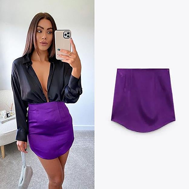 Por último, si buscas algo más sencillo, pero con un toque original, lo tuyo es el diseño satinado. Zara también ha traído esta minifalda con el bajo redondeado en varios colores, aunque la morada está gustando y mucho. Cuesta 25,95 euros y ahora mismo en la web solo queda disponible la talla XS.