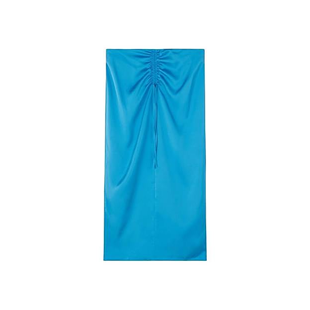 La buena noticia es que hemos fichado en Primark una falda midi que cumple con todos los requisitos anteriores. Es una falda de la nueva colección en azul, con tejido raso y fruncido en la zona de la cintura. Se trata de una falda que promete convertirse en una de las más deseadas del verano.