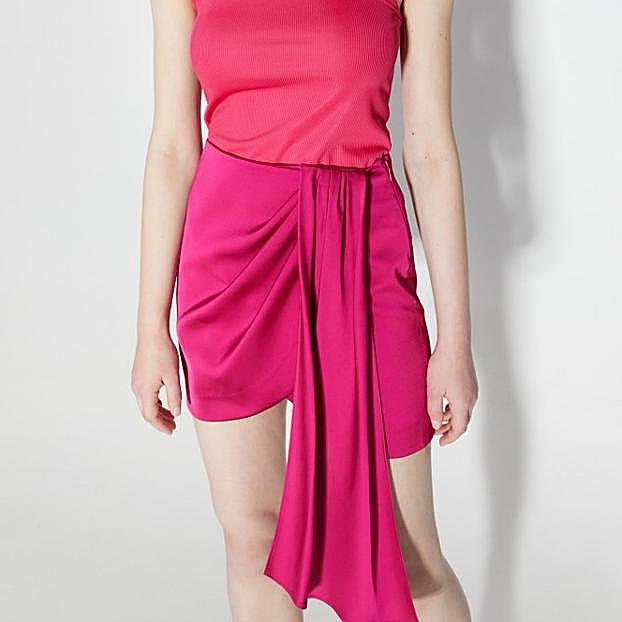 Pero Zara no ha sido la única, Sfera también ha sacado su propia versión de esta falda. Aunque se aleja un poco más del diseño inicial, tiene una especia de colar que han colocado también en la parte frontal. Está fabricada también en un tejido satinado y es en rosa fucsia, un color que se lleva muchísimo. ¡No te quedes sin ella!