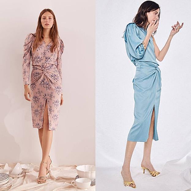 Mientras que, si deseas algo versátil que puedas estilizar para diario o eventos, te recomendamos esto dos diseños. Una falda midi con detalle de nudo en la cintura, estampado floral, abertura delantera y cuya silueta se amolda perfectamente a la figura, en color rosa y azul, por 99 euros. O, puedes decantarte por esta falda midi tipo pareo en tejido satinado, con drapeado en la parte delantera y abertura en el bajo, tono azul claro, al mismo precio que la anterior, 99 euros.