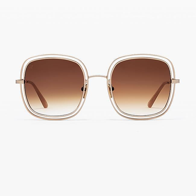 Una oda a la feminidad y al encanto sin esfuerzo. Estas gafas de sol oversize de Julia Backer combinan líneas suaves y un diseño envolvente que realza la expresión con un aire de misterio y sofisticación. Las lentes con protección UV ofrecen una visión impecable. Precio: 120 euros.
