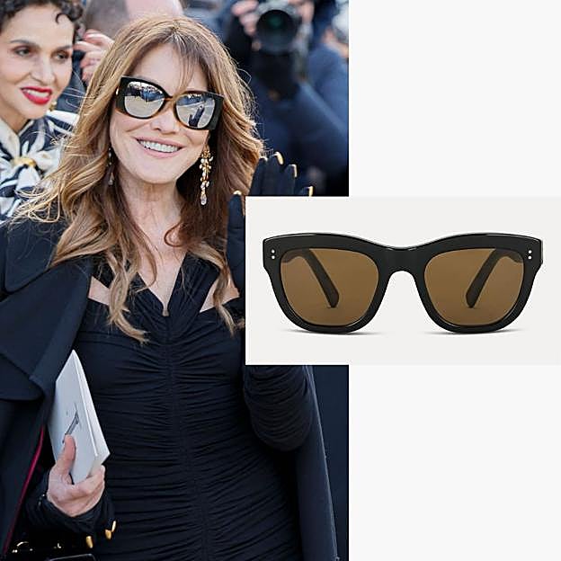 Carla Bruni ha combinado un total look de color negor con unas gafas de sol que adquirían todo el protagonismo. Se las hemos copiado en Pomandère, con una montura cuadrada de color negro y esencial de acetato de celulosa negro. Además, lleva unas lentes a contraste en un tono más claro con protección UV 100 %. Precio: 181 euros.