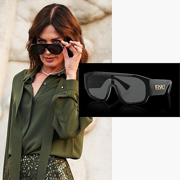 Nieves Álvarez se ha atrevido con un diseño mucho más moderno que ha lucido en la Semana de la Moda de París. Las puedes encontrar en Sunglass Hut con las Versace VE4439, testimonio del legado de estilo y sofisticación de la marca. El icónico emblema en negro pulido, combinado con lentes sólidas en gris oscuro, crea una estética elegante y vanguardista que personifica el glamour atemporal. Precio: 315 euros en Sunglass Hut.