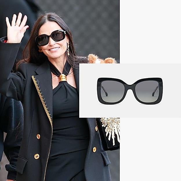 Demi Moore ha lucido este modelo XXL de color negro con montura gruesa que pudes copiar con las gafas del Christy que pertenecen a la colección cápsula MÓ Front Row. Es un modelo diseñado en acetato con silueta cuadrada «oversize». Destacan los detalles metalicos en las varillas que aportan elegencia. Además, sus lentes grises degradadas poliradadas ofrecen una visión más nítida y contrastada. Precio: 69 euros.