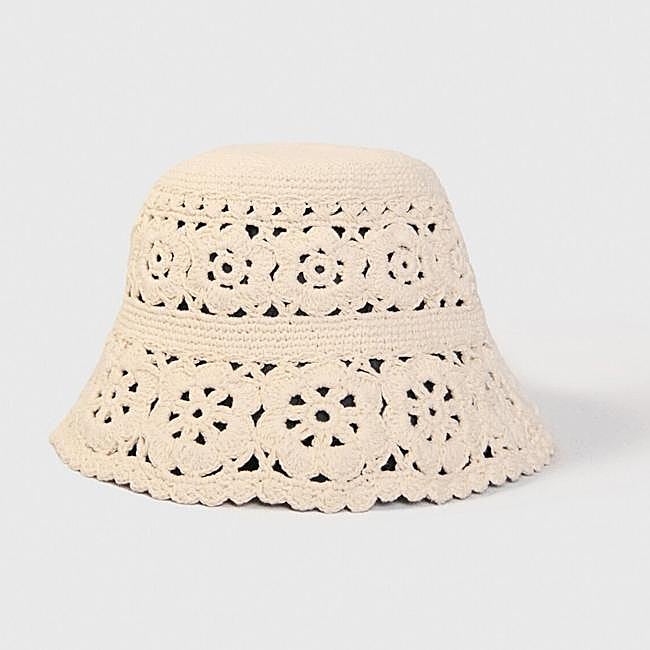 Este bob de ganchillo de Maje está adornado con flores caladas. Ideal para los días soleados, es un complemento elegante incluso para los conjuntos más ligeros. Precio: 85 euros.