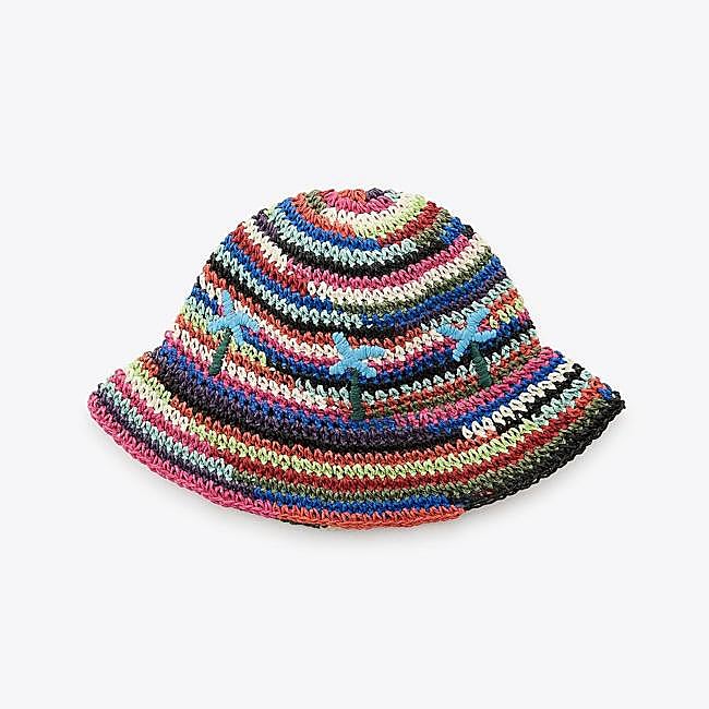 Gorro bucket trenzado con detalle de palmeras de Zara. Tiene un diseño multicolor muy veraniego. Precio: 22,95 euros.