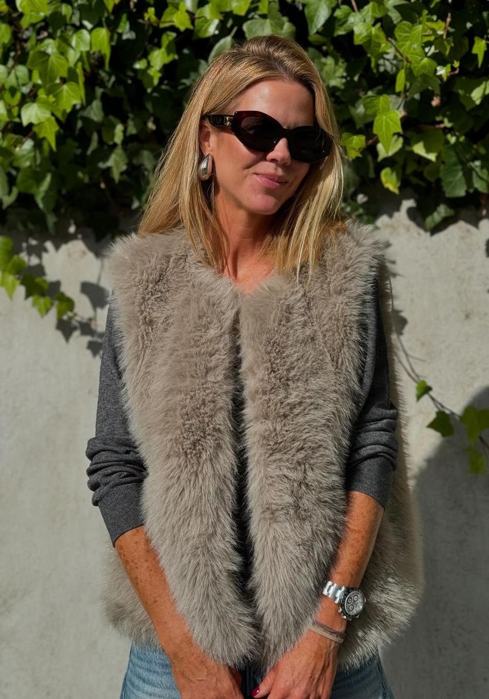 Una forma más original de llevar la tendencia de los abrigos de borreguito es en versión chaleco. Los chalecos de borreguito son cómodos y le dan un toque cálido y gustoso a los estilismos de la temporada. Puedes llevarlo solo, con un jersey gordo debajo, o con un abrigo ancho sobre él para ir aún más abrigada.