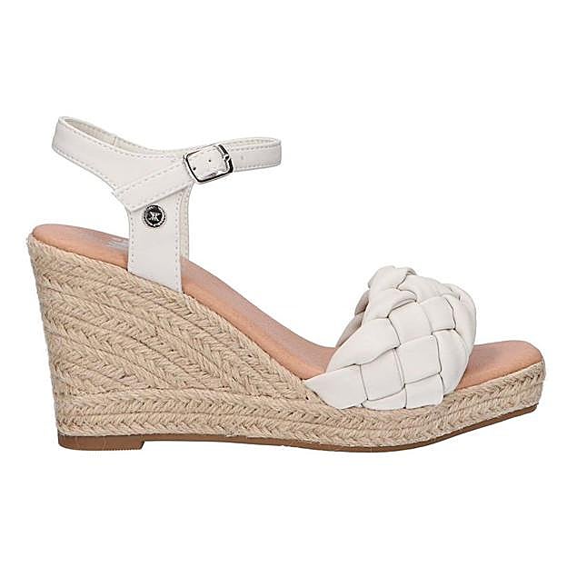 Las más parecidas que hemos encontrado son estas de XTI y nos han gustado especialmente por el diseño de la tira trenzada. El diseño es idñentico al de Isabel Díaz Ayuso, la única diferencia es ese detalle que, en vez de ser liso, es acolchado, pero mantiene la misma cuña y color y las puedes comprar por 29,95 euros.