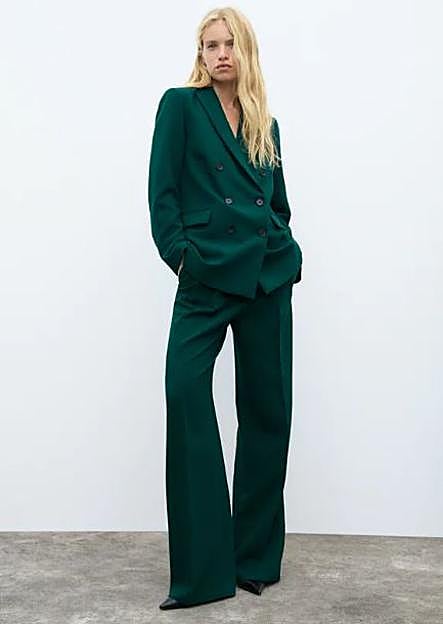 ¿La mala noticia? Que es un traje que ya está agotado porque salió a la venta hace un tiempo. De hecho, no es la primera vez que la presidenta lo luce en este último año. Pero de una mala noticia sale una buena y es que ahora mismo puedes encontrar un dos piezas muy similar en el gigante de Inditex con blazer cruzada (59,95 euros) y pantalones acampanados (29,95 euros) también en verde oscuro que es ideal. Aunque eso sí, la americana ya está agotada en varias tallas en la web porque promete ser una de las favoritas para estas navidades.