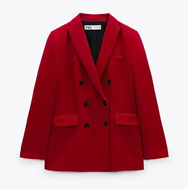 Se trata de un dos piezas formado por una blazer entallada de cuello solapa y de diseño cruzado con doble abotonadura y unos pantalones a juego. La chaqueta, que lleva los botones en color negro a contraste y tiene bolsillos en la parte inferior y uno a la altura del pecho, cuesta 59,95 euros y está casi agotada. En la web de la marca solo queda disponible la talla XS y la M. Los pantalones, por su parte, son un diseño masculino de pinzas y pernera ancha que quedan de lujo y cuestan 29,95 euros. Y, como era de esperar, también están casi agotados quedando disponibles solo la tallas S, L y XL.