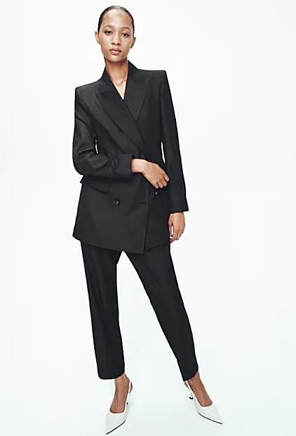 Se trata de un traje en color gris oscuro formado por una blazer con truco. Es una chaqueta cruzada con doble abotonadura más larga de lo normal, de manga larga y cuello con solapas. Un diseño ideal que cuesta 49,95 euros y que tiene su pantalón de pinzas y pernera estrecha a juego por 29,95 euros. ¡No está anda mal de precio! ¿La mala noticia? Que ambas prendas están agotadas y con lista de espera en la web de la firma. Ahora mismo, mientras escribimos estas líneas, solo está disponible la talla XS de la blazer.