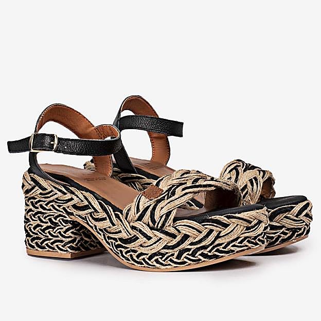 Según hemos podido ver en las fotografías, se trata de unas sandalias con plataforma y suela trenzada combinada en color natural y en negro. No sabemos de dónde son las que lleva Isabel, pero si te ha gustado el detalle de la suela combinada en dos tonos, estas de Popa con tacón cómodo son muy parecidas.