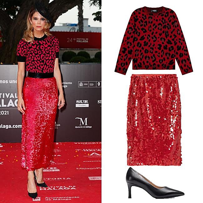 Si eres de las que se atreve con el color y los estampados, el rojo es uno de los tonos más navideños y no puede faltar en tu próximo look de estas fiestas. Si la base de tu estilismo es una falda de lentejuelas en este color, atenta a lo que hizo Juana Acosta en una alfombra roja del Festival de Málaga de 2021. Se decantó por combinarla con un jersey de estampado de leopardo, mezclando texturas, tonalidades y prints diferentes que, sin duda, fueron todo un acierto. Completó el look con unos salones negros y el resultado fue uno de los más alabados de la cita.
