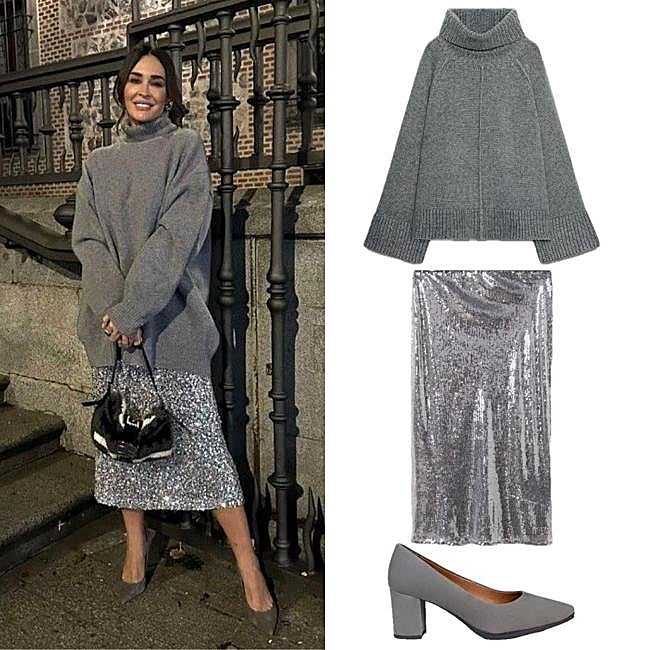 Vicky Martín Berrocal ha sido una de las que ha dicho sí a la falda de lentejuelas. Lo hizo hace unas temporadas con un modelo en color gris que combinó de forma impecable para quienes buscan looks cómodos, poco marcados y con los que sentirse a gusto durante toda la noche. Apostó por un jersey oversize en el mismo tono, una propuesta súper calentita que completó con unos salones a juego y un bolso negro.