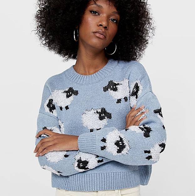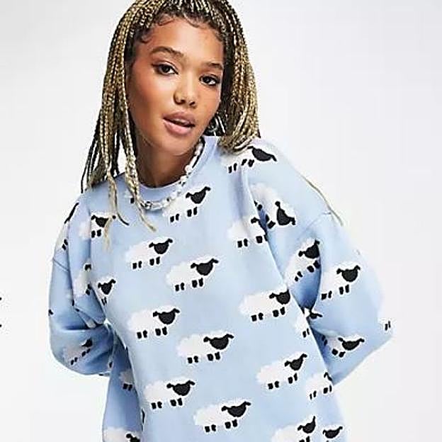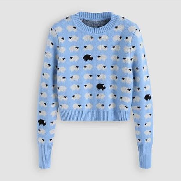 Pero no son los únicos. Si lo que te llama la atención es la idea de la oveja negra, tenemos una opción para ti. En Cider se encuentra este jersey en azul que cuesta 28,06 euros y que, sin duda, es el más parecido al que llevó Lady Di, pero con un diseño más cropped.