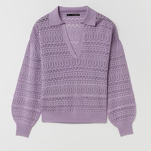 Se trata de un jersey que está disponible en la zona de precios especiales de Sfera. Ahora este jersey de punto calado está rebajado y cuesta 19,99 euros. Pero no es la única ventaja de este jersey, también su tonalidad. El color lila sigue estando de moda, y podrás llevarlo en prendas tan favorecedoras como este jersey de Sfera.
