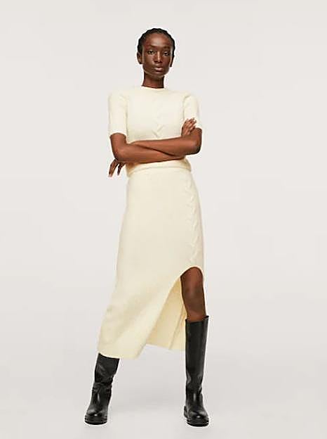 En Mango hay un conjunto de punto con el que arrasar como Juana en el mismo color, pero con falda midi. Se trata de una falda de tubo (39,99 euros) con abertura lateral y que tiene su tejido de canalé adornado con un diseño trenzado en el lateral. Un detalle que va también incluido en el top de manga corta (29,99 euros) que tiene a juego. ¡Es ideal!