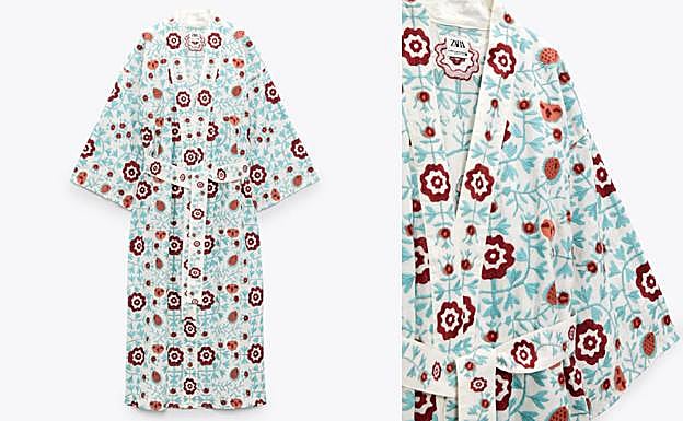 Se trata de un kimono de manga larga con flores y hojas bordadas a contraste sobre un fondo blanco y se cierra con un cinturón mediante una lazada por delante. Es de edición limitada de Zara y está elaborado con lino y algodón. Corre, porque todavía está disponible en todas las tallas a un precio de 89,95 euros, pero es tan maravilloso que seguro que vuela.