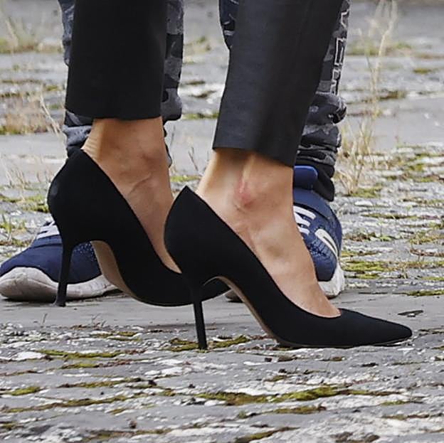 Para visitar los Monasterio de Yuso (s. XI) y Suso (s. VI) y pasear por sus patios adoquinados, la Reina Letizia ha querido demostrar su maestría en el dominio de los tacones y se ha calzado unos altísimos salones de ante negro de Carolina Herrera que para muchas serían imposibles (y más con un pavimento tan irregular), pero que ella lleva con la naturalidad de quien va en zapatillas. Sin duda, le deben resultar cómodos, porque son uno de los modelos que más usa en otoño-invierno.
