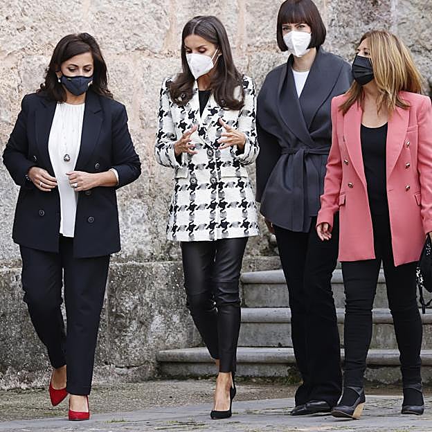 La Reina se está recorriendo esta semana España de un acto a otro. Si el lunes presidía en Vigo un congreso sobre nutrición, una de las causas con las que más implicadas está, hoy ha viajado hasta San Millán de la Cogolla, en La Rioja, para asistir a la clausura del Seminario Internacional de Lengua y Periodismo, una cita ineludible cada año en su agenda oficial. Cuando se trata de actividades relacionadas con las letras, doña Letizia siempre ofrece su mejor versión de estilo, y esta vez, en la cuna del castellano, no ha sido una excepción.