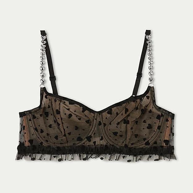 La segunda opción es algo más atrevida y arriesgada, pero igual de sexy y favorecedora. En vez de escoger un body, opta por un top o sujetador con detalles lenceros como el encaje o el plumeti. Andrea Polo y Claudia lo hicieron con un sujetador de Tezenis, un modelo balconette confeccionado con tul con corazones flocados y volantes en el bajo y los tirantes con apliques de brillantes. Una pieza ideal y con muchos detalles como para llevarla solo debajo de la ropa. Ambas influencers añadieron una blazer de efecto piel y pantalones negros. ¡Lookazos!