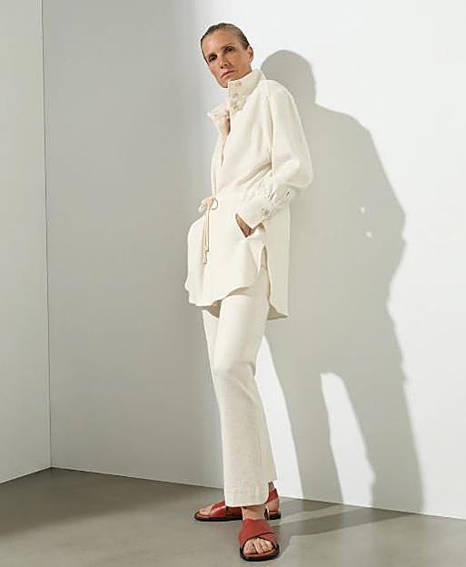 En dichas fotos, Carmen lleva con un conjunto deportivo en color crudo de Woman de El Corte Inglés. Pero no es un chándal cualquiera, sino que tiene un diseño súper original que hace que sea un look de lo más especial. Y es que, la chaqueta tiene el cuello subido y la cintura ajustable con cordón, es muy confortable y versátil e ideal para acompañar cualquier conjuntos de entretiempo. Cuesta 129 euros y además, es una chaqueta de calidad que se convertirá en todo un esencial en tu armario.