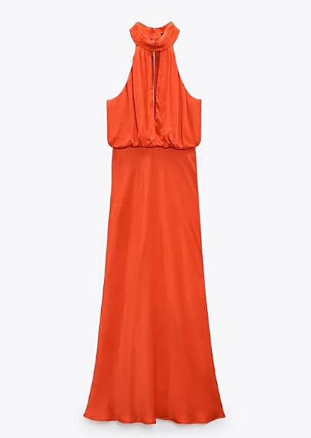 Carmen de la Cruz ha sido otra de las que han hecho propuesta de invitada este fin de semana y ha escogido uno de los colores que están despuntando este verano: el naranja. Y como no, también ha encontrado en Zara un vestido de invitada que lo lleva como protagonista. Se trata de un diseño midi de tejido satinado con cuello halter y falda de corte evasé que cuesta 39,95 euros. ¡Estaba ideal!