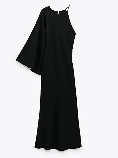 María Valdés apostó por el negro y también se decantó por Zara para la preboda de Lucía Bárcena y Marco Juncadella. Lució espectacular gracias a un diseño de manga asimétrica y cuello redondo, con largo midi y una abertiura lateral en la falda. Un diseño original, pero elegante y acertado que cuesta 39,95 euros y que combinó con unas sandalias de tacón a juego.