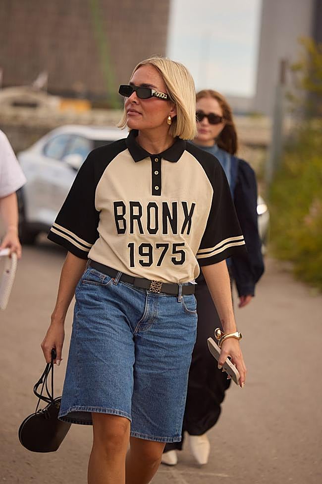 Si tienes unas bermudas vaqueras y no sabes qué hacer con ellas, debes saber que puedes sacar su versión elegante, pero también una más casual. Y eso no implica ir mal vestida. Añade una camiseta tipo oversize por dentro y sube el nivel con un bolso original.