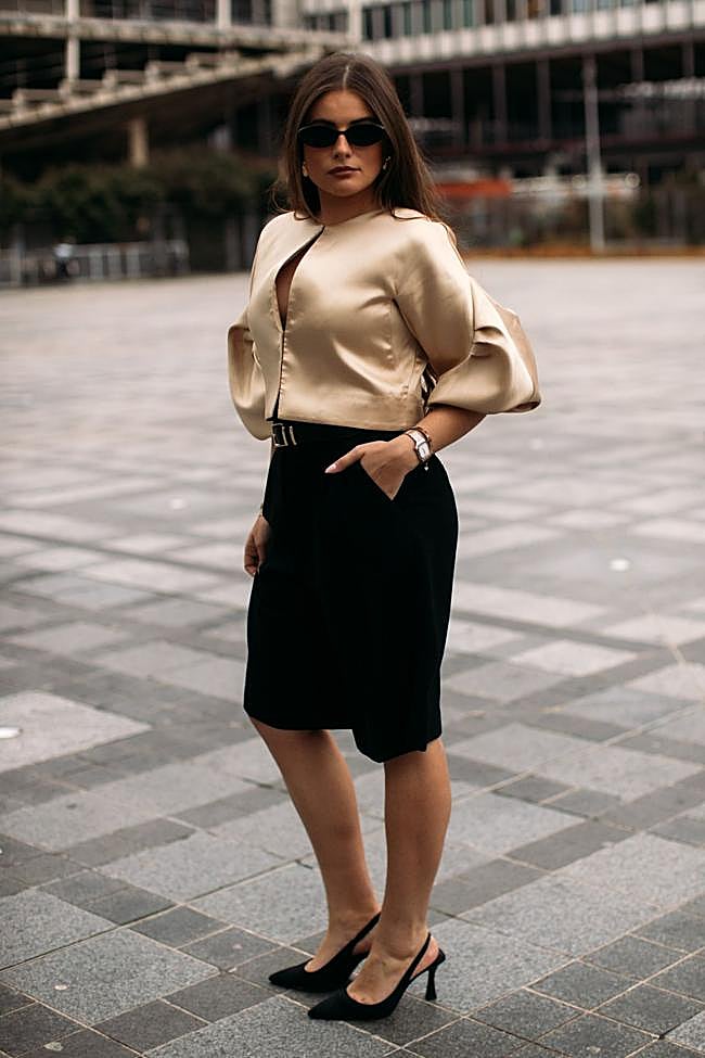 Por último, un look de verano perfecto. Unas bermudas blancas y un top satinado y con un toque de color. Esta influencer demuestra que queda de maravilla, que son elegantes y que puedes completar la fórmula con unas bailarinas y un capazo. ¡Perfecta!