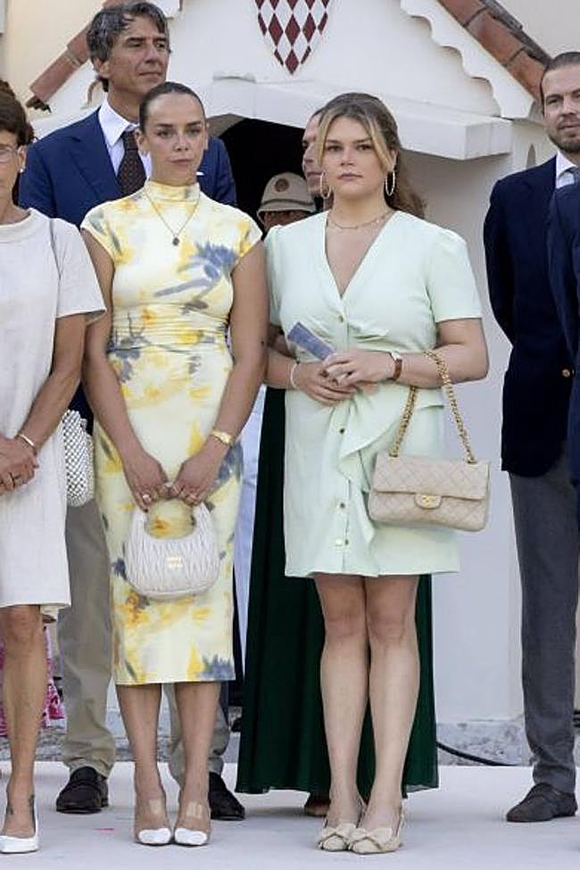 Las hijas de Estefanía de Mónaco desmotraron tener estilos diferentes. Pauline escogió este vestido tie dye en color amarillo que acompañó de un bolso de Miu Miu y zapatos de tacón originales. Camille, por su parte, se decantó por un vestido verde mini con bolso de Chanel y salones con lazo.