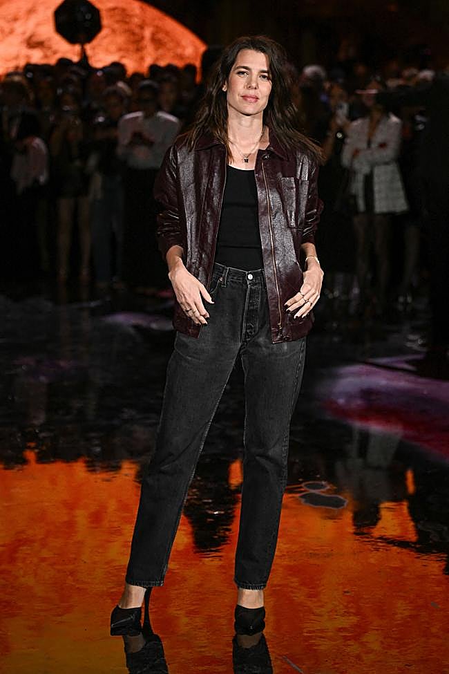 La hija de Carolina de Mónaco apostó por un look moderno formado por prendas básicas. Entre ellas, la protagonista era una cazadora de cuero de color burdeos que combinó con el negro y tacones altos.
