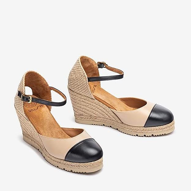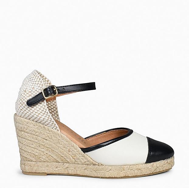 Unisa. Puntera de piel en contraste y talonera de rafia y tira ajustable con hebilla metálica (99,90 euros).
