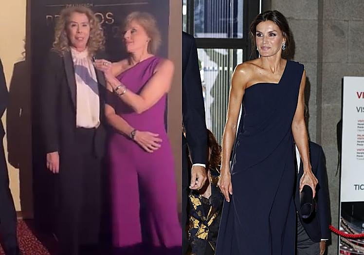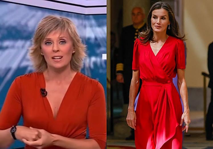 Sí, echando un vistazo a algunas apariciones destacadas de la periodista, nos hemos dado cuenta de que tienen muchas similitudes. Físicamente, se parecen, y ambas recurren a las mismas piezas clave cuando quieren sacar su versión más elegante y formal. Es evidente el amor de la reina y la periodista por los monos y en sus armario no faltan las camisas, las blazers y, por supuesto, el color rojo.