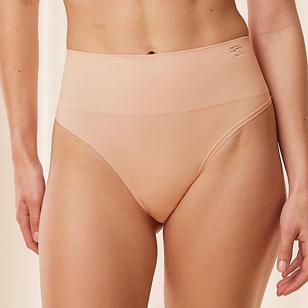 Braga de Dim con efecto de control. Es un modelo de talle alto que cubre la barriga estilizando la figura. Además, su color nude combina con todo y no se transparenta.