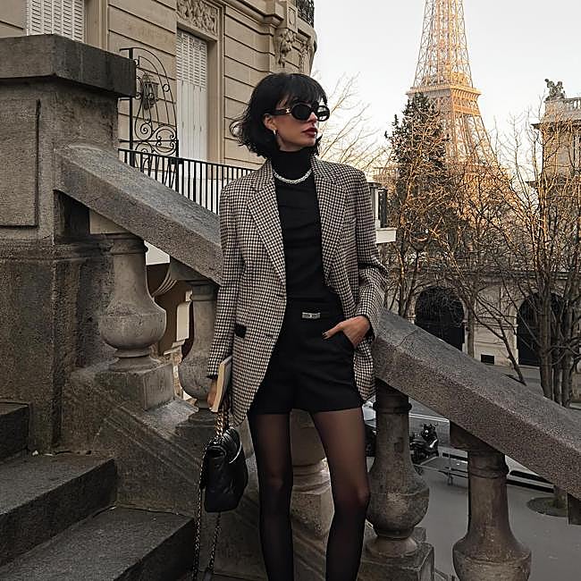 Todo al negro y prenda diferente. Puede ser como el look de la influencer, o puedes llevar un vestido y una prenda que rompa la sencillez; pero las bases son claras: todo al negro y una pieza que añada luz y desvíe la atención para que no se vea monótono.