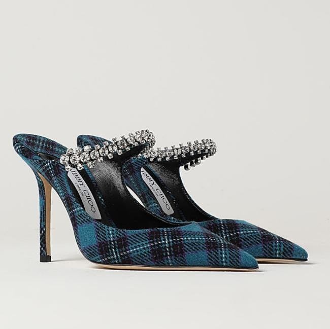 Si buscas algo más elegante que pongan ese punto brillante en tus looks de Navidad, este modelo de Jimmy Choo nos ha robado el corazón. Se trata de un diseño destalonado con un estampado de cuadros en color azul y con del detalle de pedrería en el empeine. Precio: 925 euros.