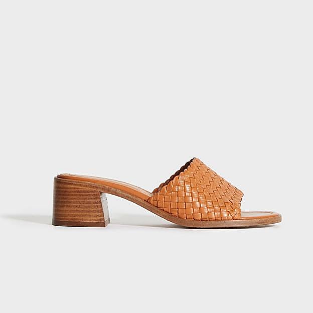 Las suyas son de la firma Comptoir des Cotonniers y se trata de un modelo muy bonito y cómodo en un color camel precioso: un mule destalonado de piel y con apertura en la parte delantera. La tira del empeine es gruesa para una mejor sujección, va trenzada para elevar el zapato a otro nivel y dar el toque de estilo que todo básico necesita, y el tacón tiene la altura justa y necesaria para estilizar las piernas sin resultar incómodo, es cuadrado y mide 4,5 centímetros.