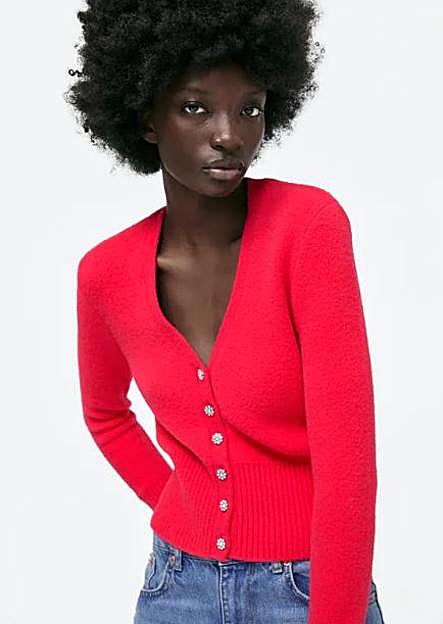 Sí, ya sabemos que el rosa y el verde son los dos tonos de la temporada, pero, ¿qué me dices de este coral tan bonito? Es el protagonista de este cárdigan de Zara que le hemos fichado a Nagore. Se trata de una chaqueta de manga larga, corte ajustado y tacto suave, que lleva el escote en pico y que tiene como detalle unos botones joya minis ideales. Cuesta 25,95 euros, está disponible desde la talla XS a la XL y también puedes comprarla en color blanco.