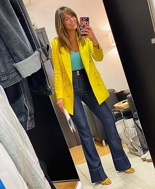 Un diseño muy original en denim oscuro con costuras verticales que ayudan a que estilice aún más y que, como ha demostrado Nuria, sienta de lujo y es uno de los diseños que mejor queda. Ella lo combinó con una blazer amarilla de La Condesa, sandalias de tacón a juego de Jimmy Choo y un top de punto en aguamarina de Zara. Un look con el que demuestra que los colores también son para el otoño y con el que ha confirmado que toda mujer debe tener unos jeans de este estilo. ¡Valen para todo!