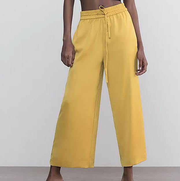 Por último, pero no menos importante, este pantalón de diseño culotte con tiro alto y cintura elástica ajustable con cordones que podemos encontrar en color mostaza, negro y naranja quemado. Con bolsillos laterales ocultos en costura y de plastrón en la espalda tiene un precio de 19,95 euros y está disponible entre las tallas XS y XXL.