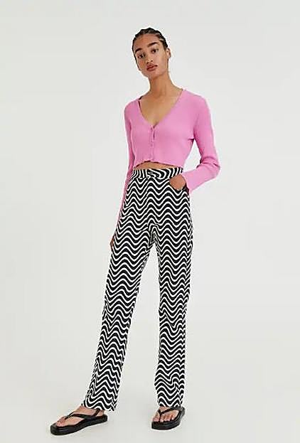 Hablamos de un diseño que no solo nos ha gustado por su estampado, si no también por su diseño. Son unos pantalones de corte recto, protagonizados por un talle alto y una pernera larga y recta que sienta de lujo. Una silueta súper favorecedora que es la que mejor queda, que recuerda a los pantalones setenteros que se llevaron en su momento y que ahora son súper tendencia.