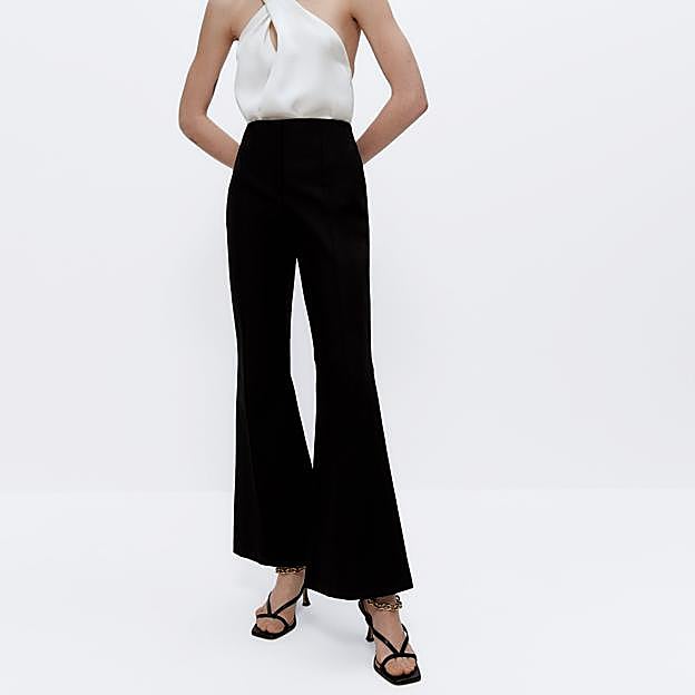 Con lo favorecedor que es el negro, no podía faltar en nuestra lista y llega con un precioso pantalón de campana que estiliza aún más nuestra figura. Con bolsillos laterales y confeccionado en tejido de algodón, tiene un precio de 79 euros y está disponible entre las tallas XS y L.