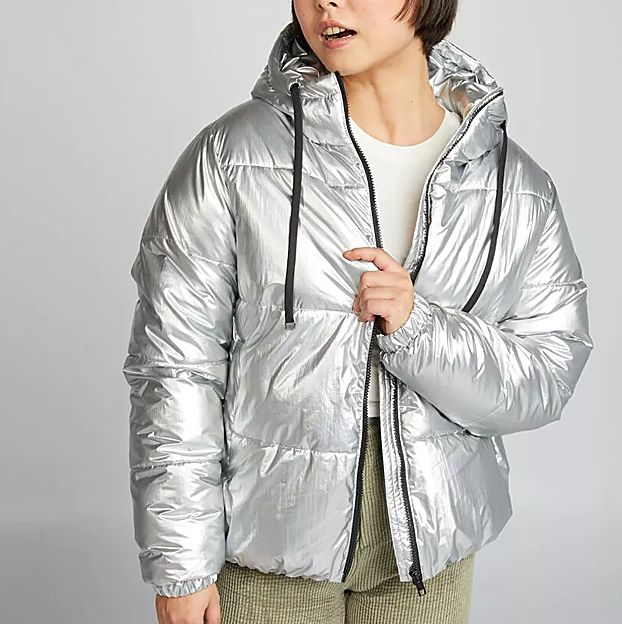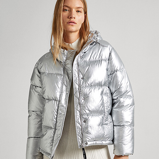 Plumífero acolchado en nylon con tejido plateado resistente al agua de Pepe Jeans (170 euros).